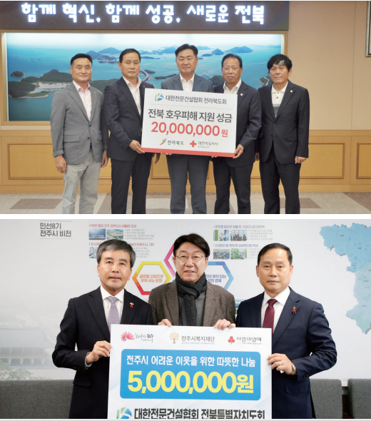또한 재난 상황에서도 발 벗고 나섰다. 20223월 대형 산불로 피해가 컸던 경북 울진을 비롯해, 2023년과 2024년 여름 집중호우로 특별재난지역으로 선포된 전북 익산 등 피해 현장을 직접 찾아가 물심양면의 지원을 아끼지 않았다. 특히 추운 겨울과 연말연시에는 소외된 이웃을 위한 성금을 전달하며 지역사회 구성원으로서 책임을 다해 왔다. 이러한 꾸준한 나눔은 지역사회의 발전과 상생을 이끄는 밑거름이 된 것이다.