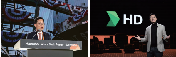 손재일 한화에어로스페이스 대표는 “우리의 기술은 갈등을 유발하기 위한 것이 아니라 생명을 보호하기 위한 것”이라고 말하며, 기술의 목적이 전쟁이 아닌 평화 유지와 인류 안전에 있음을 분명히 했다. 한화시스템은 AI 기반 방어 체계와 첨단 감시·정찰 기술을 소개했고, 한화오션은 해양 방위와 민·군 겸용 기술을 결합한 차세대 함정 시스템을 발표했다.